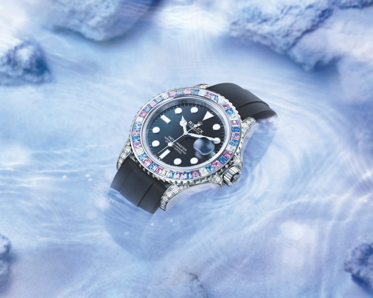 海天相接處,旭日東升,海面上的薄霧色彩繽紛。新款Yacht-Master 40巧妙地將這些寶貴瞬間凝於腕間,以北極光與晨曦為靈感,腕錶外圈鑲嵌八組粉紅色藍寶石、淺藍色藍寶石、鑽石、紫色藍寶石與深藍色藍寶石逐一排列鑲嵌。錶耳及錶冠護肩點綴 46 顆鑽石,呈現賞心悅目的腕錶傑作。