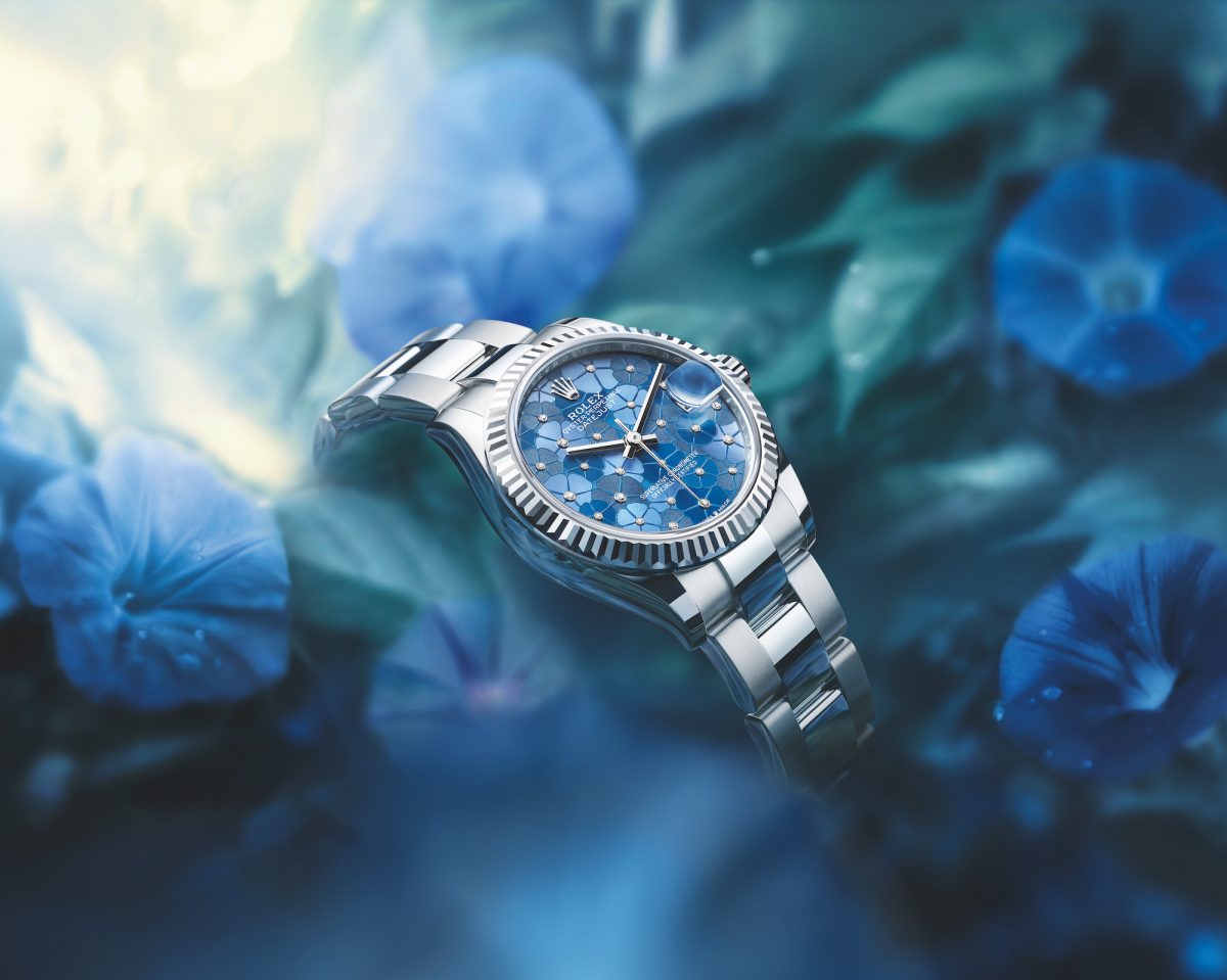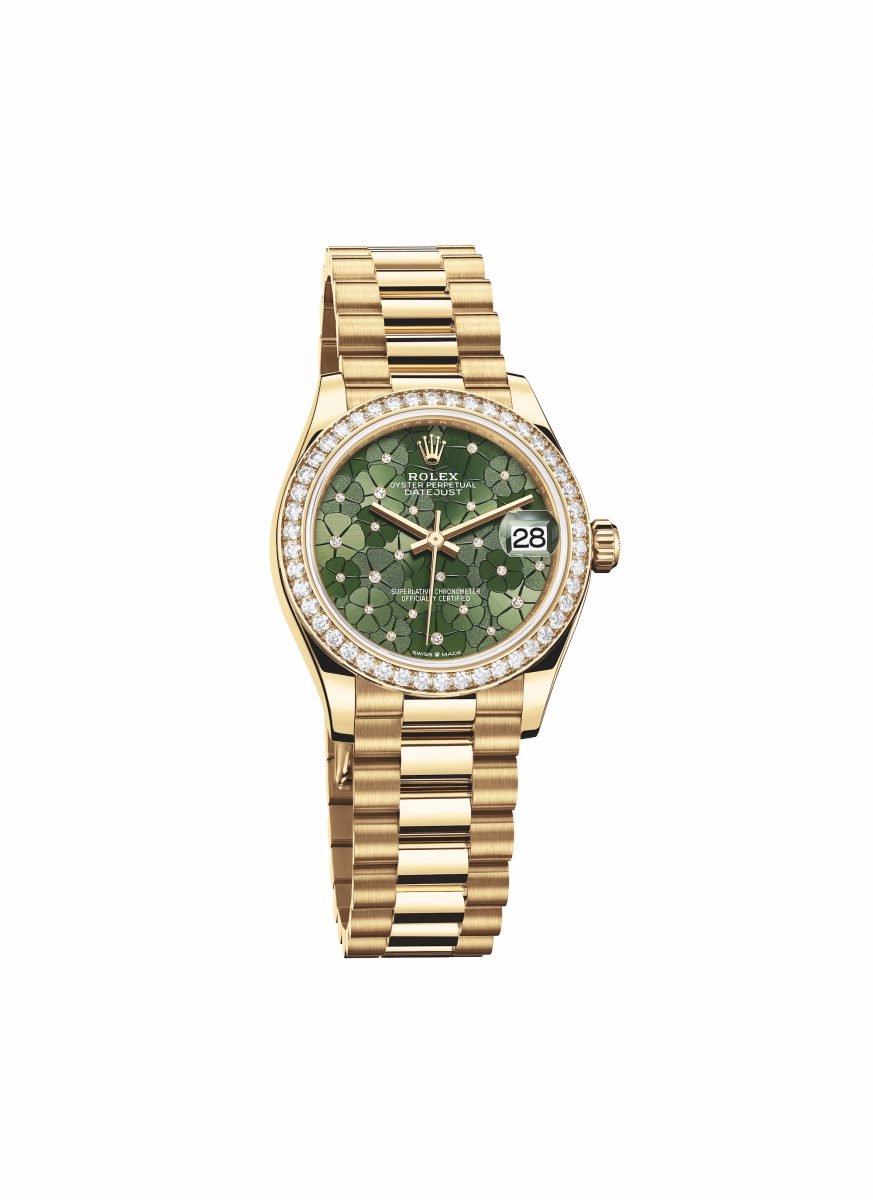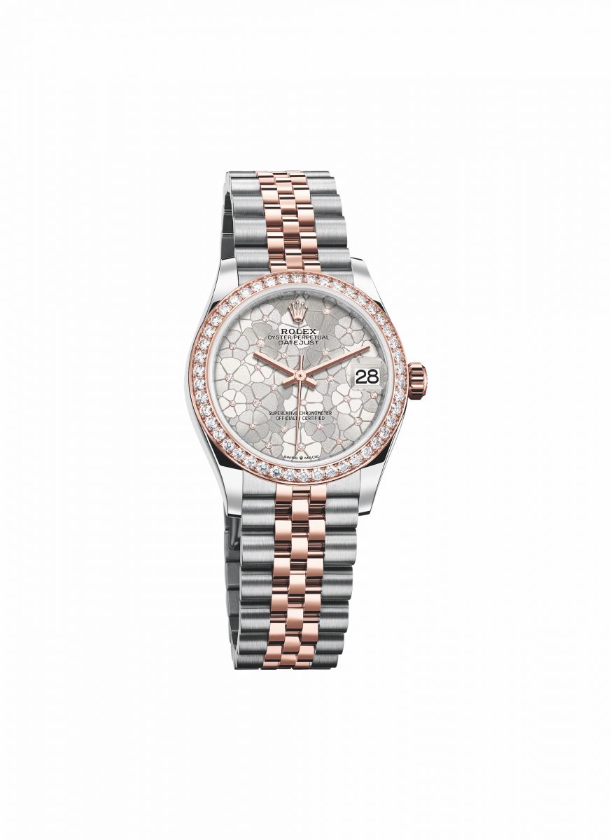 新款 Datejust 31 採用錶面具有太陽光線效果、啞面或粒紋三種飾面裝飾,點綴花朵圖案,在光線照耀下栩栩如生。錶面備有天藍色、橄欖綠色及銀色可供選擇。大小各異的鑽石令錶面更璀璨動人,猶如晶瑩的露珠凝結於花朵之中。