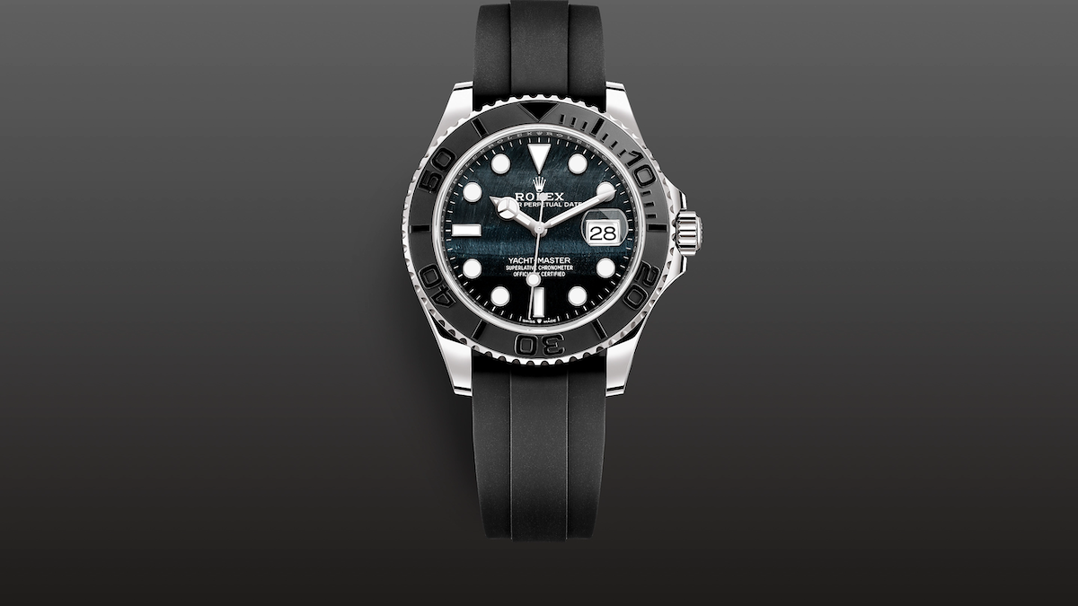 YACHT-MASTER 42腕錶18CT黃金款,搭配黑色錶面及OYSTERFLEX錶帶。腕錶配備雙向旋轉60分鐘刻度外圈,配啞黑色Cerachrom陶質字圈和磨光立體數字及刻度,成為水上運動以至揚帆遠航的理想之選。