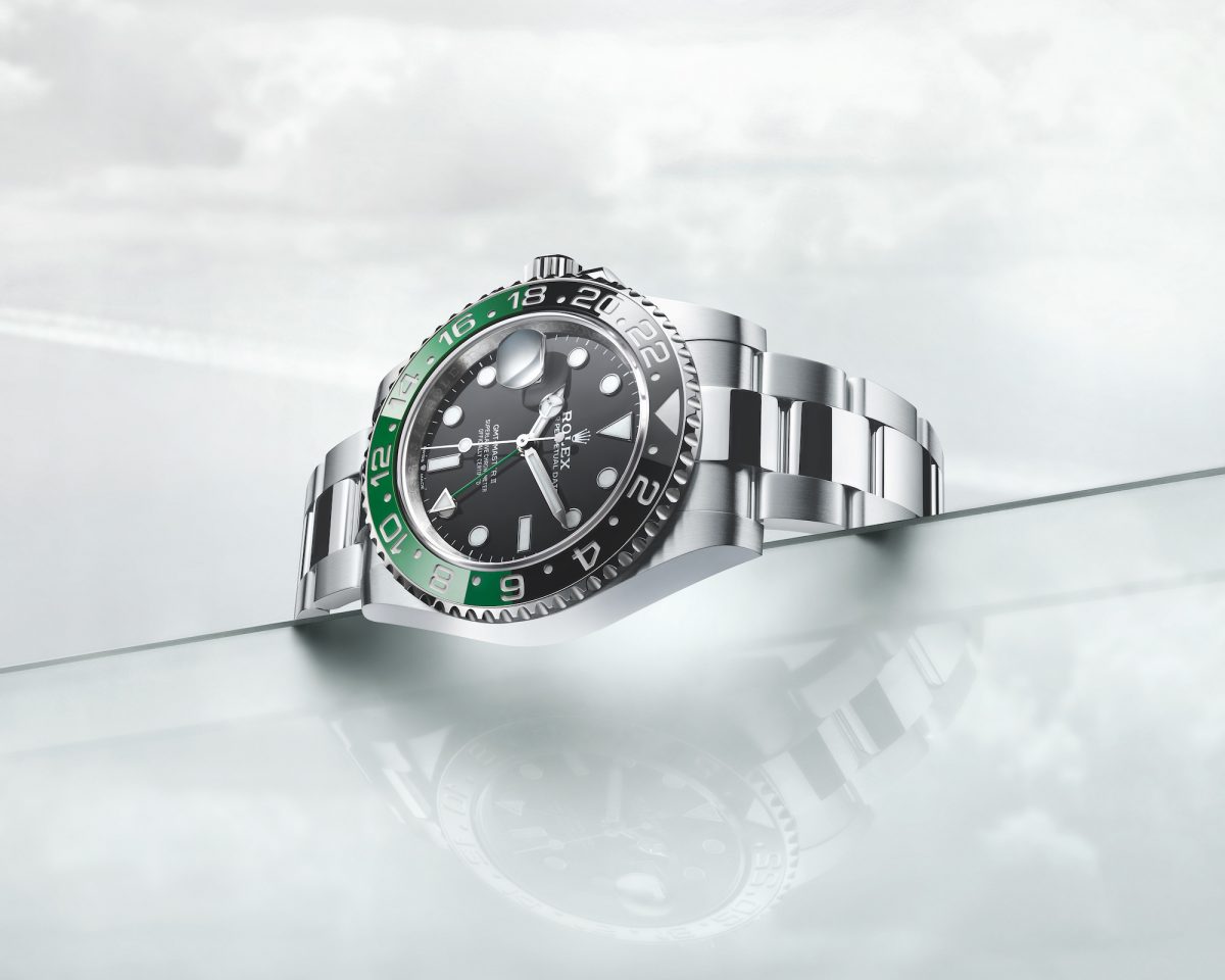 全新 GMT-Master II 是一款革新之作。腕錶的上鏈錶冠移至錶殼左側,日曆窗移至 9 點鐘位置, 日曆盤亦經過重新調整,啓用嶄新配色,搭配綠黑雙色 Cerachrom 陶質字圈。