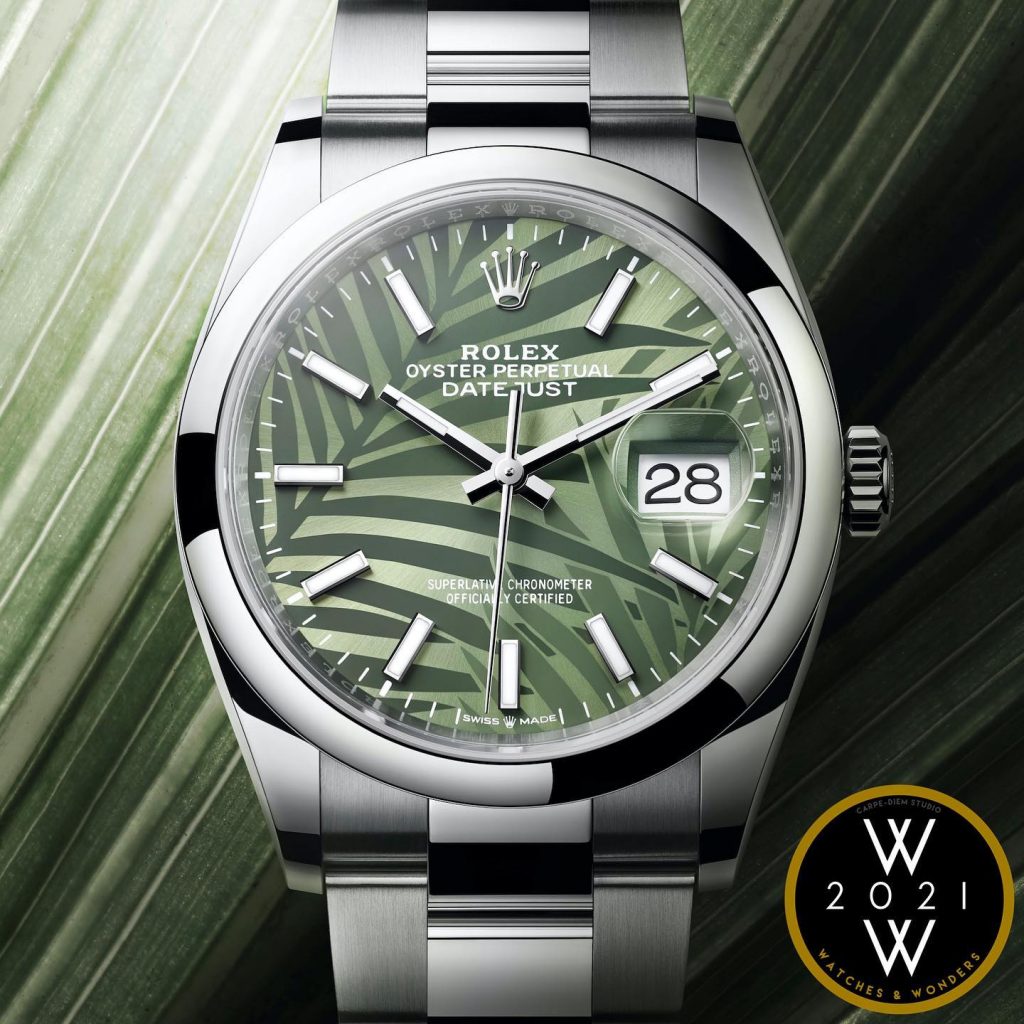 勞力士新推出Oyster Perpetual Datejust 36(蠔式恒動日誌型 36),搭配全新棕櫚葉圖案錶面及坑紋圖案錶面。棕櫚葉圖案讓人聯想到茂密且充滿生機的熱帶雨林,而坑紋圖案常見於勞力士腕錶外圈,是品牌標誌性風格之一。