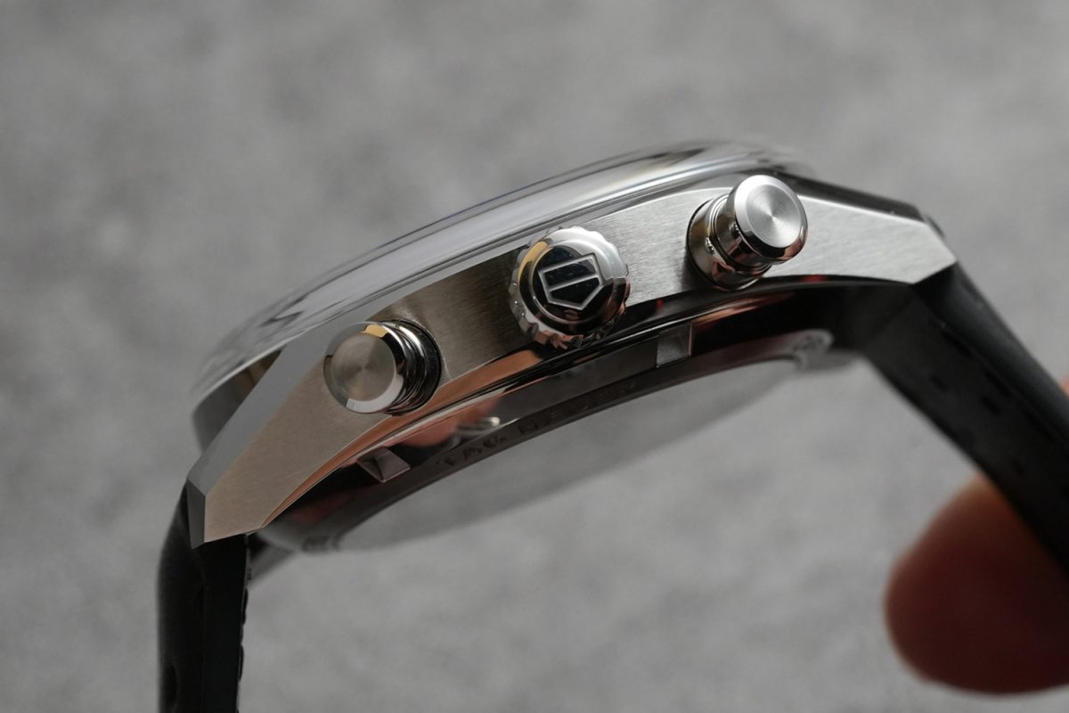 採用不鏽鋼錶殼的腕錶尺寸為中性的39mm,錶殼頂部採用弧形藍寶石水晶錶鏡,形狀類似1970年代Heuer Carrera錶款上的弧形紫水晶(Hesalite Crystal)。全新腕錶的水晶弧形線條流暢,這要歸功於 TAG Heuer設計團隊,將錶面各細節打磨、拋光、擺放臻至平衡,創造出柔和光滑,且俐落的視覺效果,邊緣綴有精製飾面,讓錶面整體既絲滑且平穩地緊密相連,創造出細緻光滑的觸感。