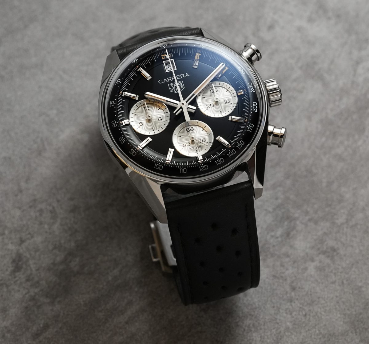 兩款腕錶以兩種方式表達同一歷久彌新之理念:藍面腕錶的靈感源自現代,而黑面腕錶則更強烈體現 Carrera 系列的賽車根源,兩款腕錶小錶盤刻度細微的差別,也讓黑面腕錶更具賽車風格。藍面腕錶日期視窗位於 6 點鐘位置,而黑銀腕錶則推至 12 點鐘位置,讓錶面更加清晰易讀。