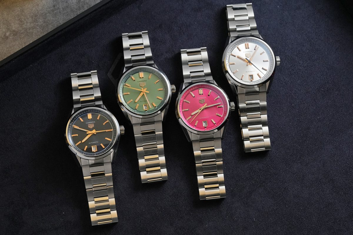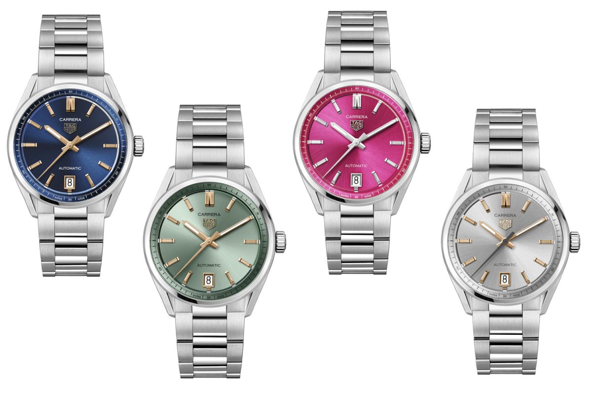Carrera日期腕錶共有深藍、淺綠、粉色與暖銀四種配色。