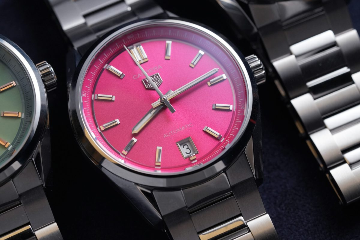 煥然一新的Carrera日期腕錶採用充滿活力的全新錶面配色,將搭配三種錶面顏色:TAG Heuer Carrera標誌性的深藍色、低調細緻的淺粉綠,以及暖銀色,而5月,將迎來第四款亮粉色蝸形紋錶面,加入本系列陣容,均搭配精緻的放射狀太陽紋飾面。現代品味、跳脫傳統黑白錶盤的保守設計。