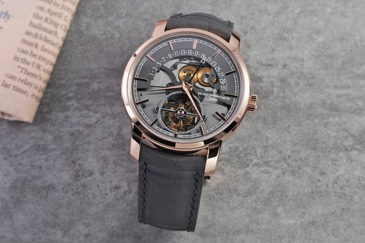 Traditionnelle陀飛輪逆跳日曆鏤雕腕錶