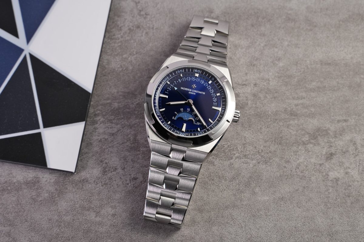 Overseas系列月相逆跳日曆腕錶/錶徑41mm/不鏽鋼錶殼/2460 R31L/2自動上鍊機芯,動力儲存40小時,日內瓦印記/防水50m/快拆不鏽鋼鍊帶,另附小牛皮與橡膠錶帶。