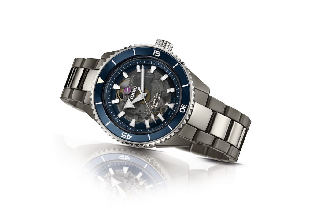 致力於創新設計以及高科技材質研發及運用的材質大師Rado瑞士雷達表,推出多年研發的成果-Captain Cook高科技陶瓷鏤空自動腕錶,面盤與底蓋以黑色藍寶石水晶製作而成,能夠輕易透視機芯之美,錶面再搭配做工繁複且成本極高的盒型雙面防反光藍寶石水晶玻璃,層次感十足。